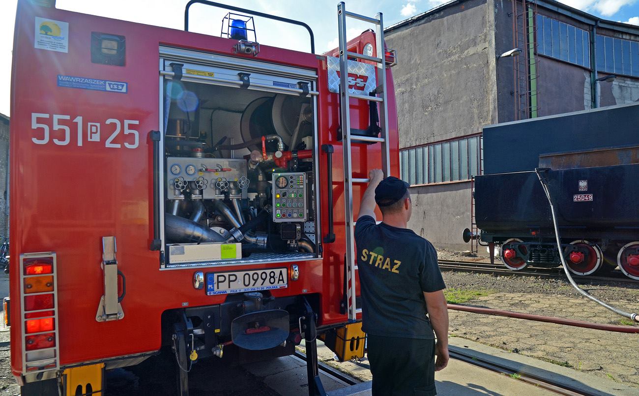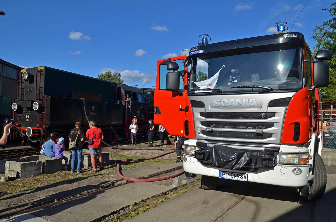 Przed godziną 18. na tyłach pilskiego dworca kolejowego odbyło się tankowanie Bluesexpressowej lokomotywy. Na miejsce przybył ciężki wóz gaśniczy z „1”, który w kilka minut wypełnił po brzegi parowóz, a ten następnie udał się w stronę Zakrzewa. PSP tankowanie 2015-07-11 Admin Udostępnij tweet