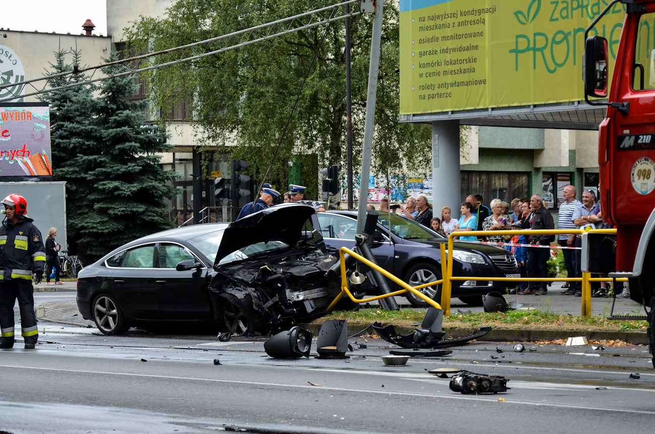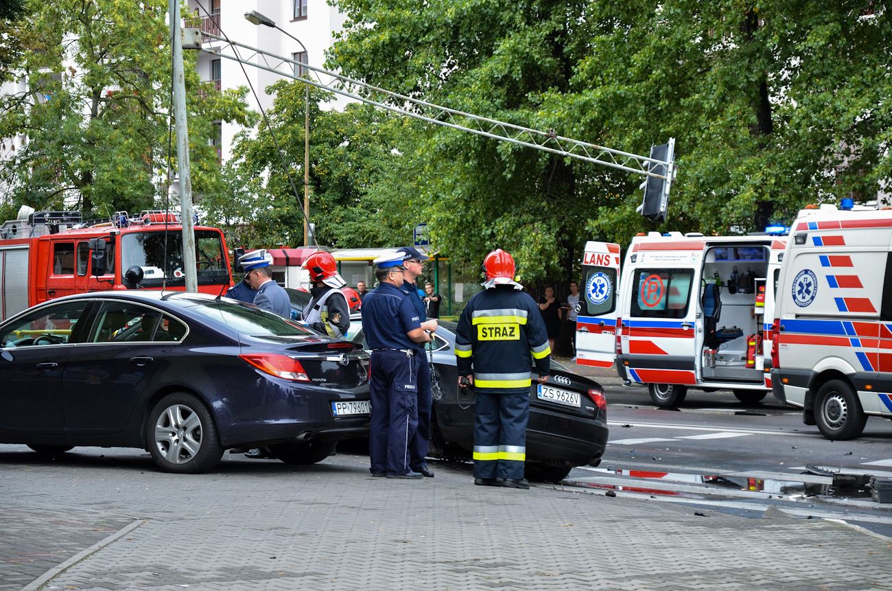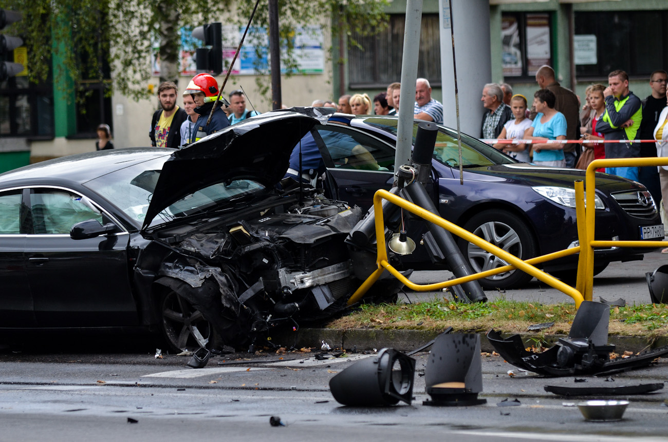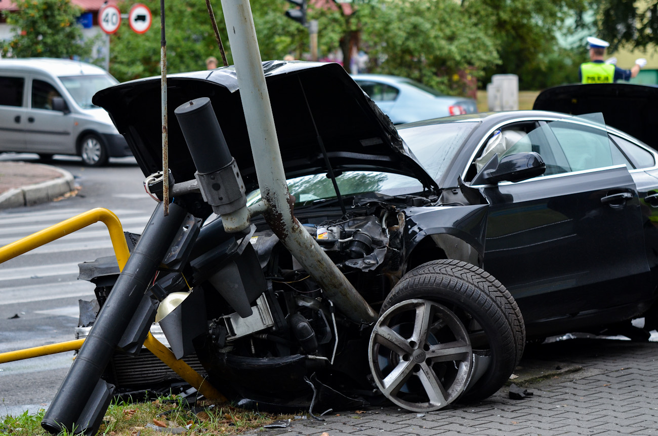 Przez swoją brawurową jazdę uszkodził dwa pojazdy (seat, ford), a na domiar tego zniszczył słup sygnalizacyjny i barierki drogowe. Chwilę później policja schwytała kryminalistę, który był trzeźwy. Na miejsce akcji błyskawicznie zadysponowano dwa zastępy straży z 2. pilskich jednostek, pilską i ujską karetkę oraz mnóstwo policjantów.