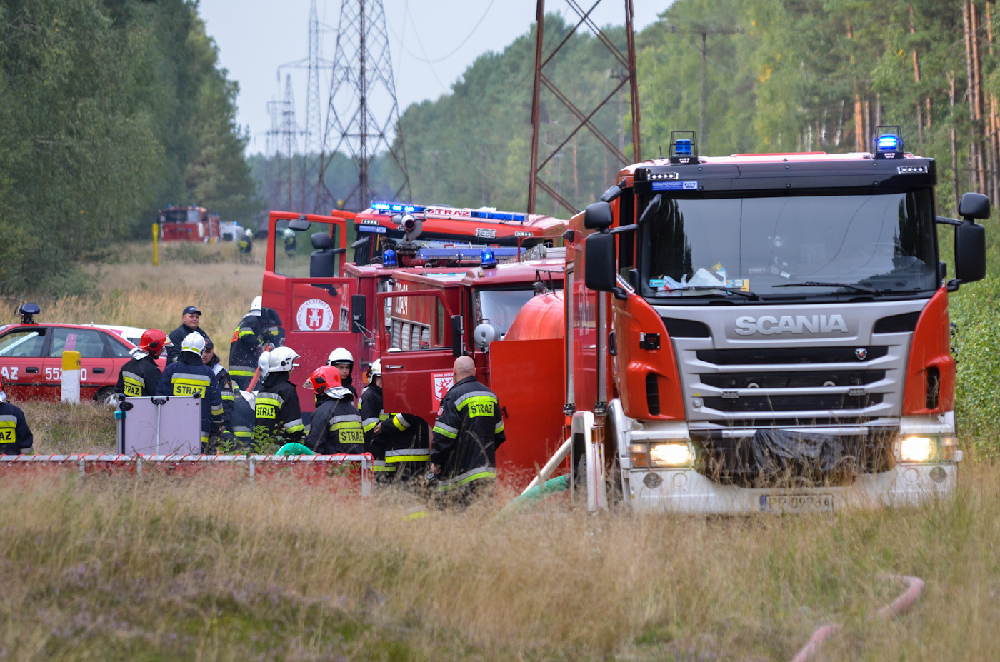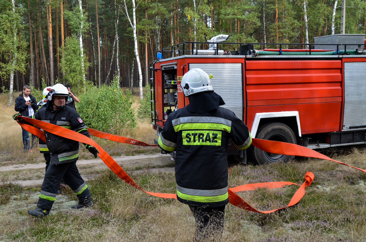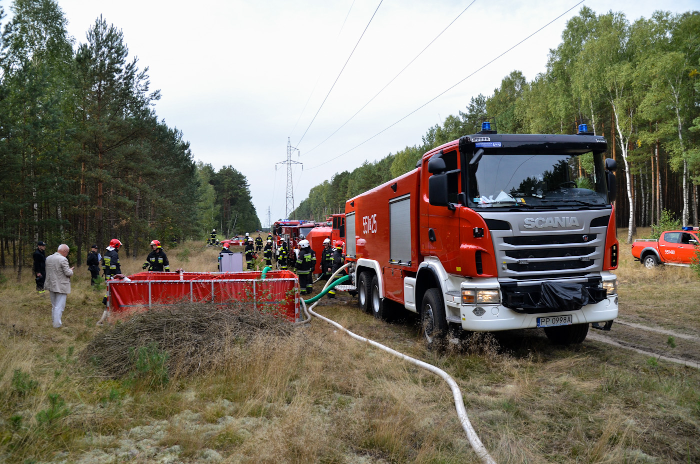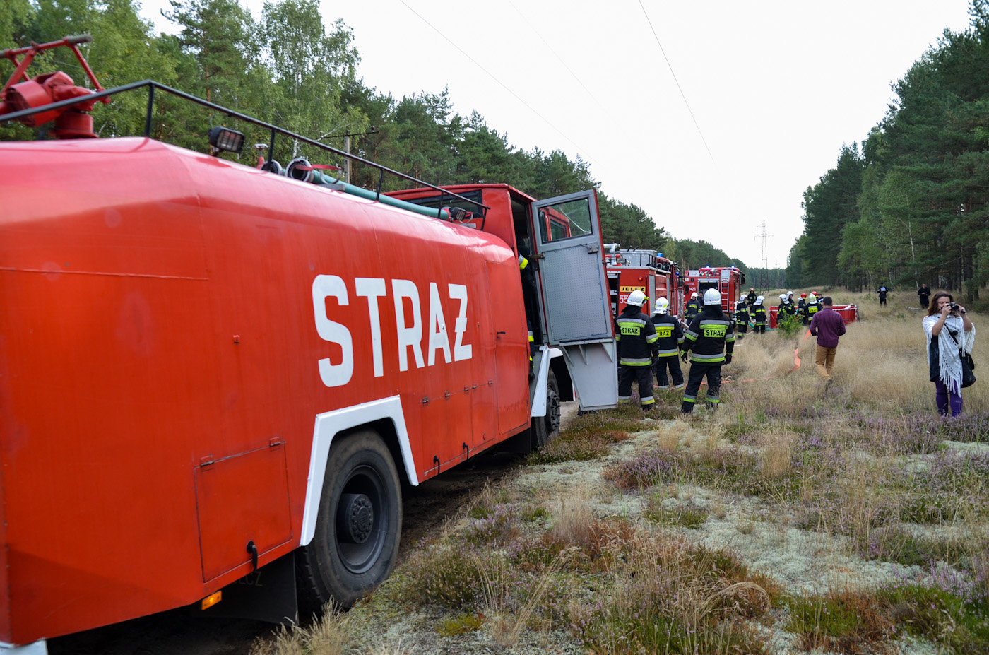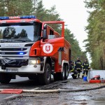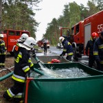 Poza akcją gaśniczą strażacy ćwiczyli także pobór wody z pobliskiego jeziora, przy użyciu motopomp, ale również tworzenie punktów czerpania wody oraz rozwijanie linii gaśniczych na duże odległości. Strażaków wspierał także samolot gaśniczy Dromader z Krępska.