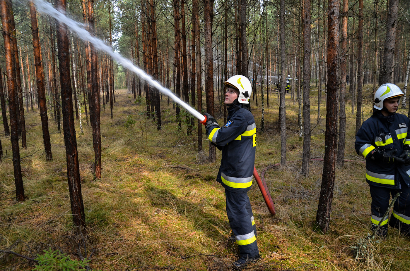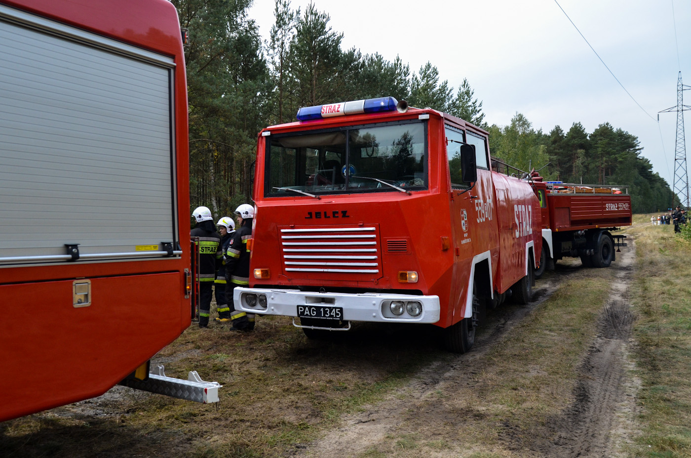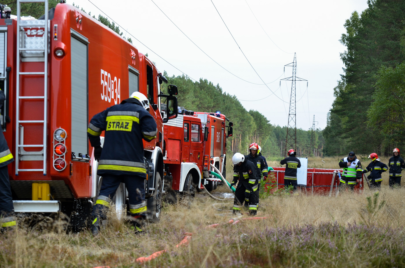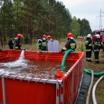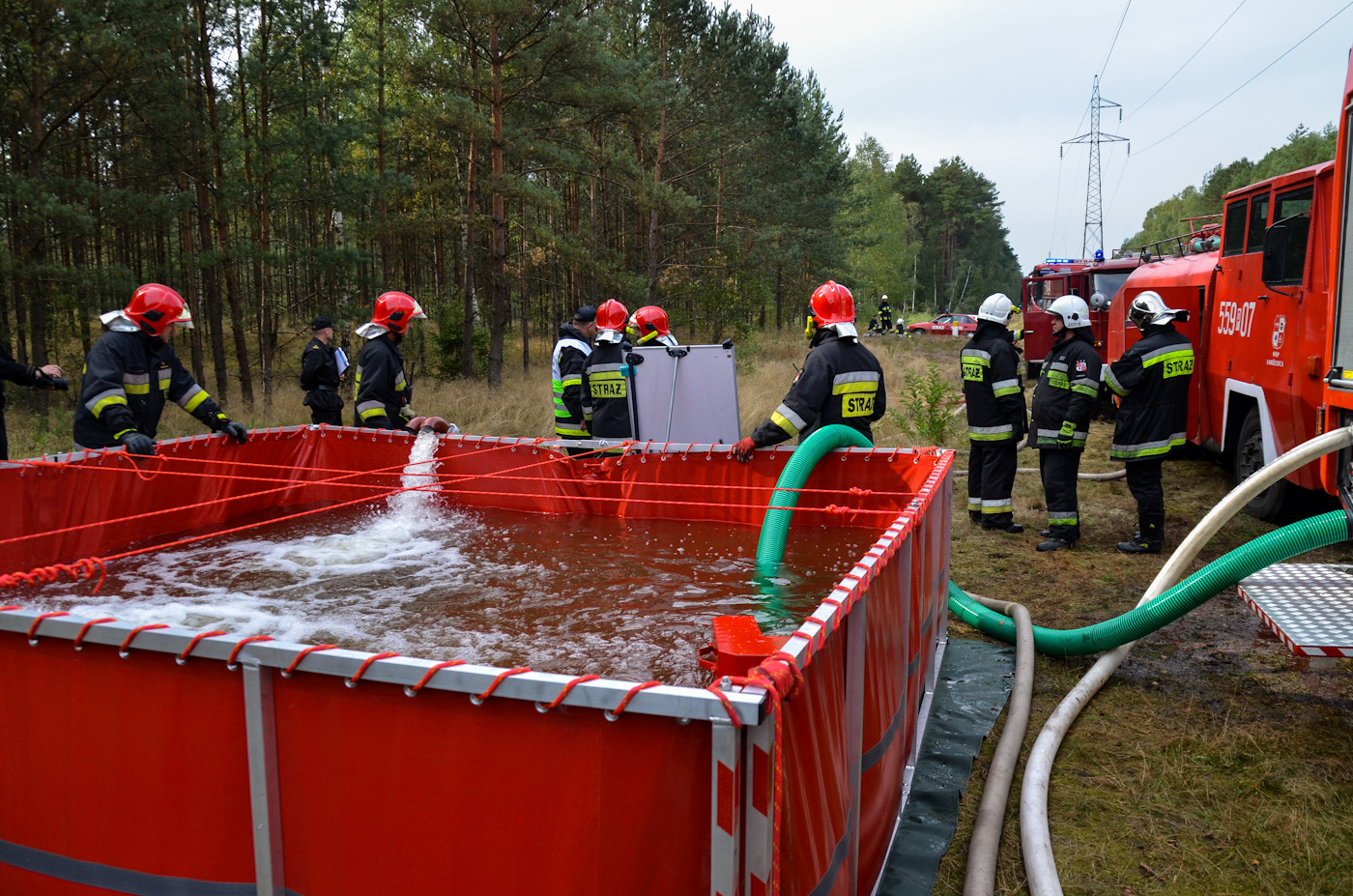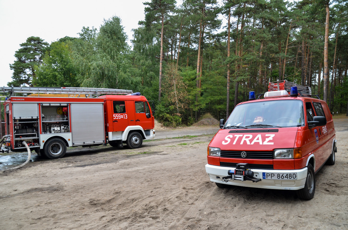 Poza akcją gaśniczą strażacy ćwiczyli także pobór wody z pobliskiego jeziora, przy użyciu motopomp, ale również tworzenie punktów czerpania wody oraz rozwijanie linii gaśniczych na duże odległości. Strażaków wspierał także samolot gaśniczy Dromader z Krępska.