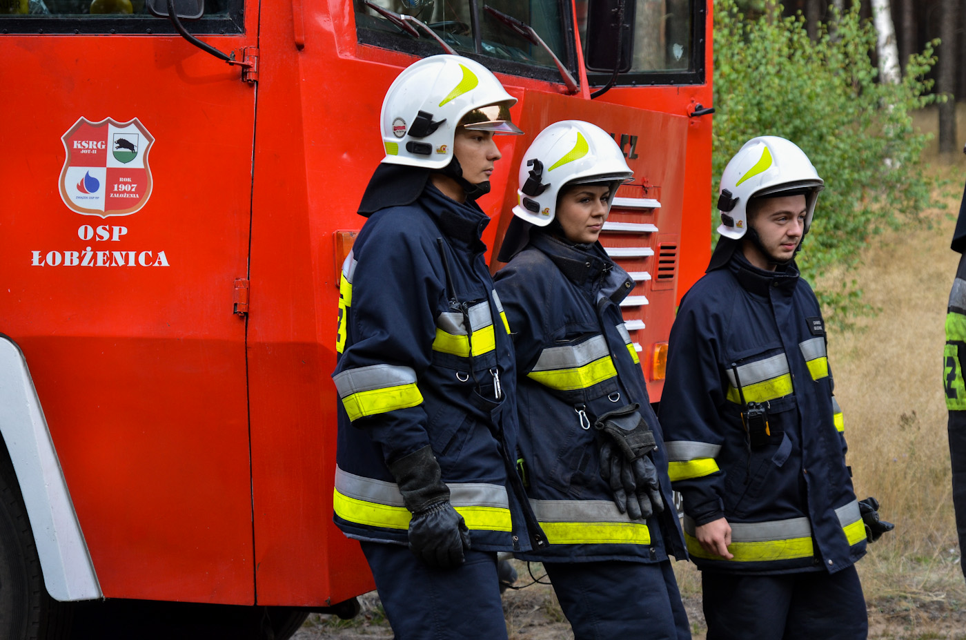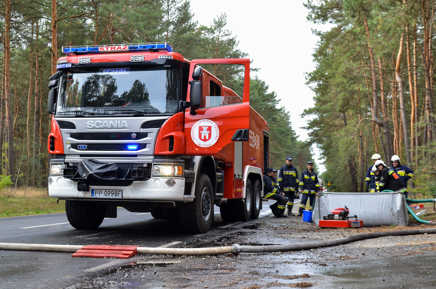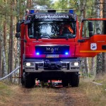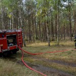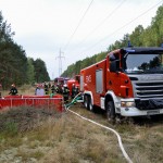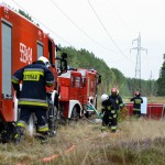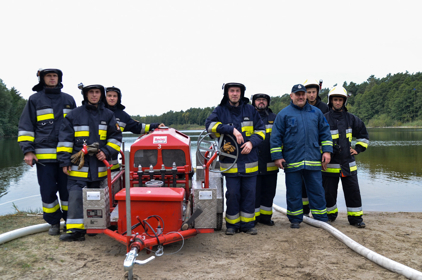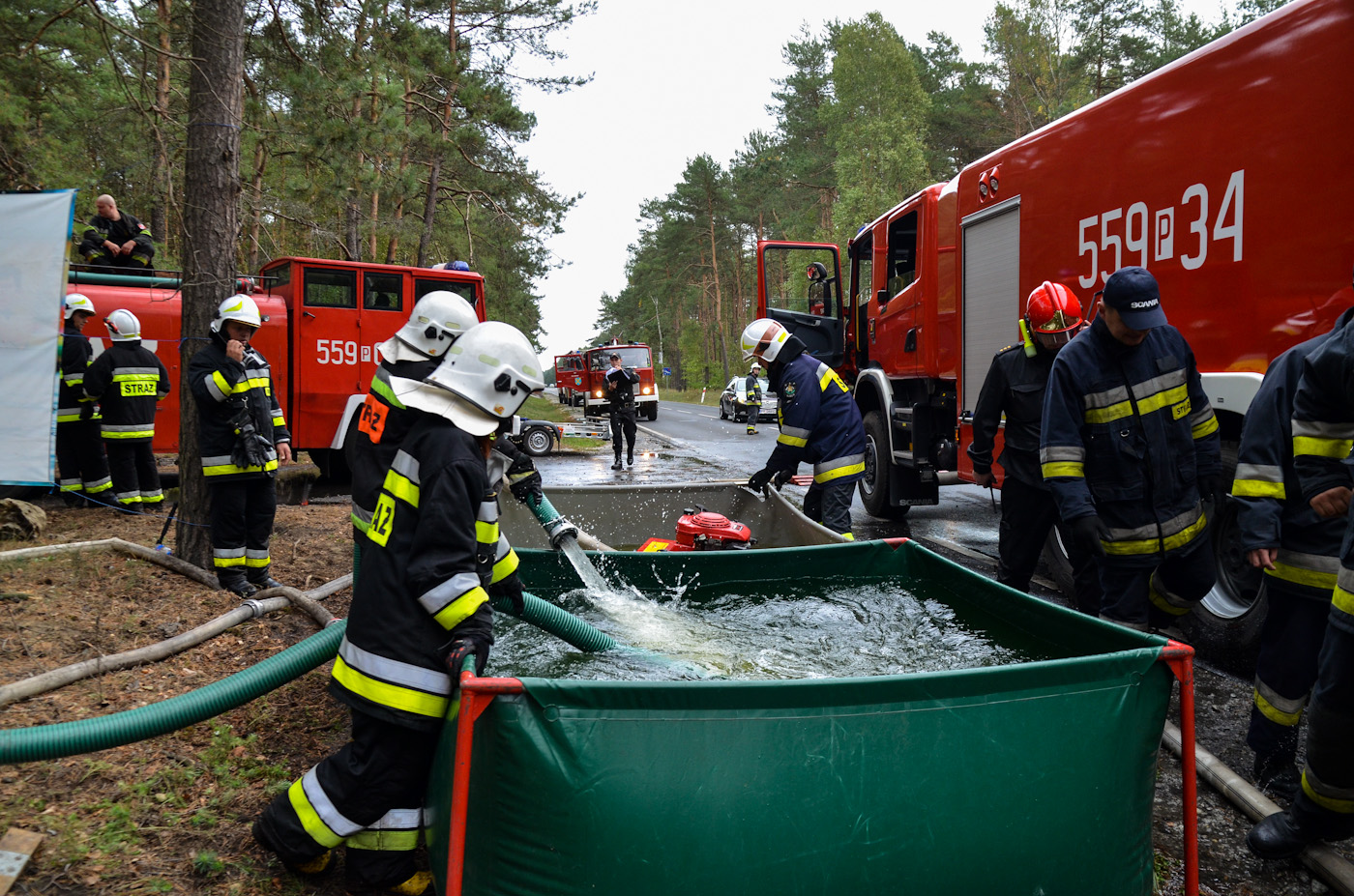 Poza akcją gaśniczą strażacy ćwiczyli także pobór wody z pobliskiego jeziora, przy użyciu motopomp, ale również tworzenie punktów czerpania wody oraz rozwijanie linii gaśniczych na duże odległości. Strażaków wspierał także samolot gaśniczy Dromader z Krępska.