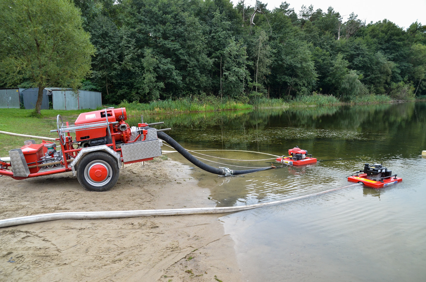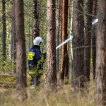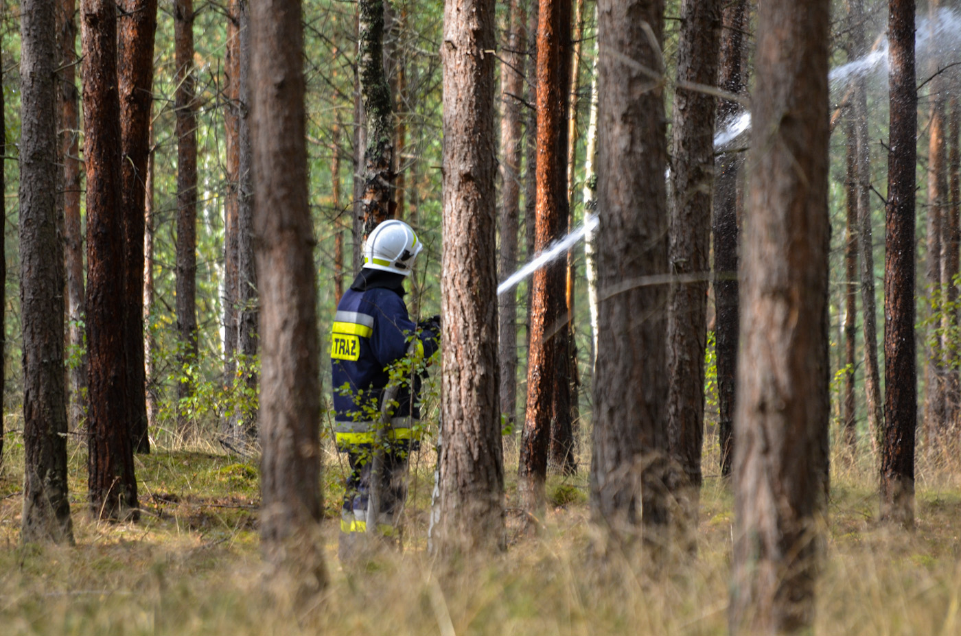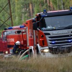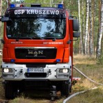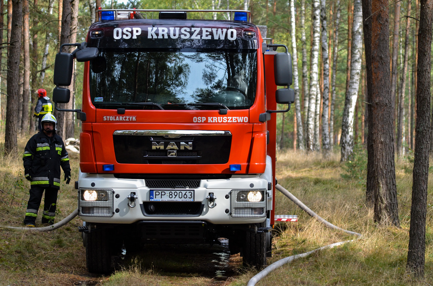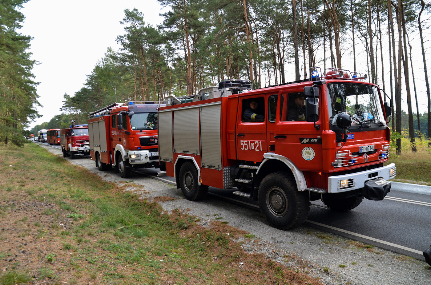 Poza akcją gaśniczą strażacy ćwiczyli także pobór wody z pobliskiego jeziora, przy użyciu motopomp, ale również tworzenie punktów czerpania wody oraz rozwijanie linii gaśniczych na duże odległości. Strażaków wspierał także samolot gaśniczy Dromader z Krępska.