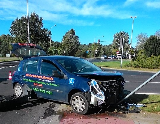 Przed godziną 11. dyżurny Stanowiska Kierowania Komendanta Powiatowego (SKKP) otrzymał zgłoszenie o kolizji na rondzie Wojska Polskiego/Mickiewicza. Na miejsce zadysponowano średni wóz z JRG 1 oraz policję. Na czas działań występowały utrudnienia w ruchu.
