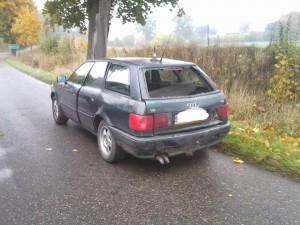 Samochód marki Audi zatrzymał się na drodze ze względu na znajdującą się na jezdni osobę prawdopodobnie pod wpływem alkoholu, niestety jadący za nim Opel nie wyhamował i uderzył w tył Audi.