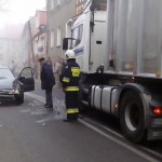 Około godziny 8:00 strażący z Łobżenicy zostali zaalarmowani do wypadku na ulicy Wyrzyskiej w swojej miejscowości. – Na miejscu zdarzenia okazało się, że auto osobowe zderzyło się z pojazdem ciężarowym, nasze zadania polegały na zabezpieczeniu miejsca zdarzenia, kierowaniu ruchem w sposób wahadłowy oraz na sorpcji płynów ropopochodnych – informują strażacy.