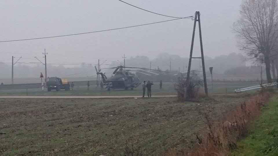 Wczoraj około godziny 13. zastęp z OSP Osiek został zadysponowany do pomocy przy… próbie odlotu 7. śmigłowców wojskowych w Bąkowie (gmina Wyrzysk), które od dwóch dni są uziemione przez mgłę. Na miejscu poza ochotnikami pojawili się także policjanci oraz żandarmeria wojskowa. Ich działania polegały na pomocy przy starcie maszyn, na około 30. minut zamknięto drogę powiatową prowadzącą z Osieka do Białośliwia.
