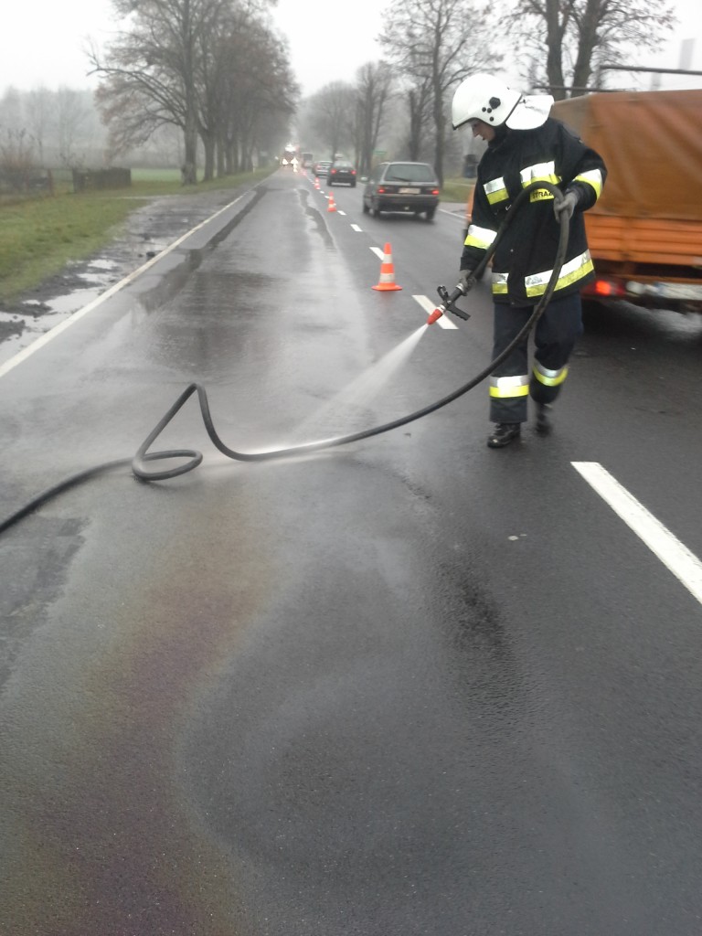 Plama miała długość 500 metrów, zajmowała całą szerokość jednego pasa ruchu. Na odcinku, gdzie znajdowała się plama, strażacy zorganizowali ruch wahadłowy.