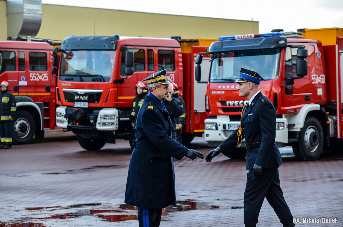 Strażacka uroczystość rozpoczęła się punktualnie o godzinie 13:00. Na terenie Jednostki Ratowniczo-Gaśniczej nr 2 w Pile odbyło się uroczyste przekazanie siedmiu nowoczesnych pojazdów dla zawodowych strażaków z Piły.