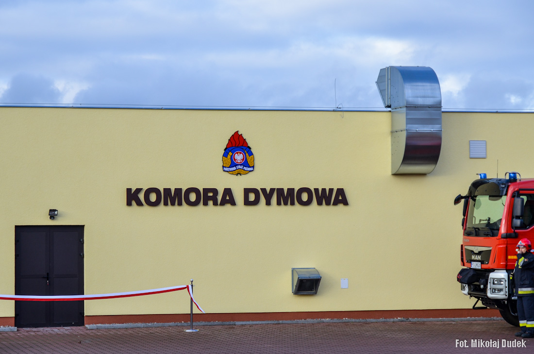 W tej uroczystości odbyło się także otwarcie komory dymowej, gdzie strażacy z całego regionu będą szkolić swoje umiejętności jeżeli chodzi o pożary. – Komora dymowa to takie pomieszczenie, w którym panują warunki zbliżone do tych podczas pożarów wewnętrznych. To duże pomieszczenia, w których są specjalistyczne klatki, a w nich różne przeszkody. W komorze jest wyłączone oświetlenie, słychać różne dźwięki symulujące wybuchy czy krzyki osób poszkodowanych. Jest też sztuczny dym, który ogranicza widoczność. W takich warunkach strażacy w specjalistycznych ubraniach i aparatach ochrony dróg oddechowych ćwiczą – mówi kpt. Paweł Kamiński z PSP Piła. Każdy strażak zawodowy ma obowiązek zaliczyć komorę dymową raz na dwa lata, natomiast ochotnik raz na pięć lat.