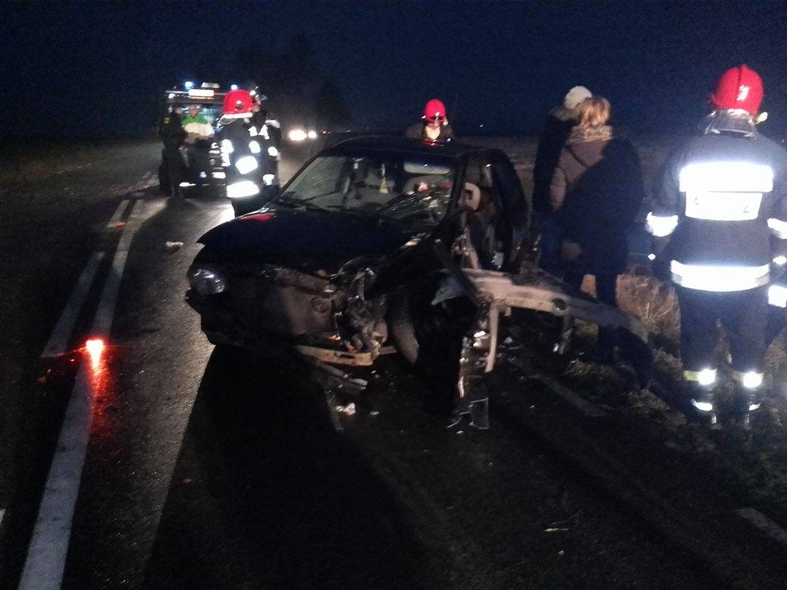 Ze wstępnych ustaleń wynika, że jeden z kierujących stracił panowanie nad samochodem i uderzył czołowo w prawidłowo jadący w przeciwnym kierunku pojazd. W wyniku wypadku jedna osoba została przetransportowana przez ZRM do Szpitala Specjalistycznego w Pile z ogólnymi obrażeniami ciała. Drugi z kierujących nie odniósł obrażeń.