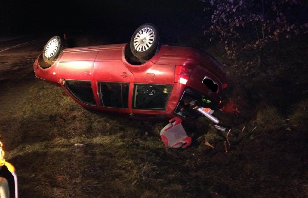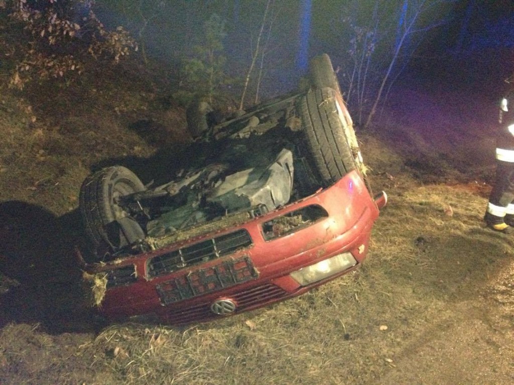 Po dojeździe na miejsce, zastano samochód leżący na dachu na poboczu oraz kierującego, który o własnych siłach opuścił pojazd. Poszkodowanego od razu przejął Zespół Ratownictwa Medycznego. Kierujący został przewieziony do szpitala na obserwację. Działania strażaków polegały na zabezpieczeniu miejsca zdarzenia oraz odłączeniu akumulatora.