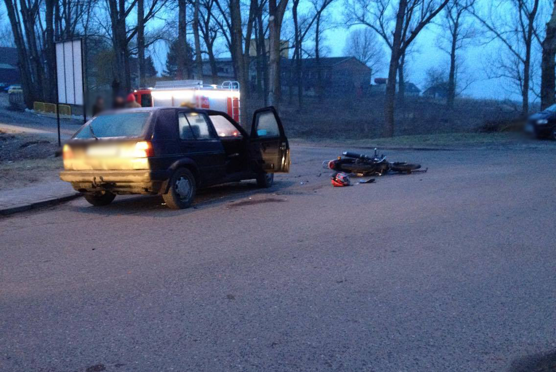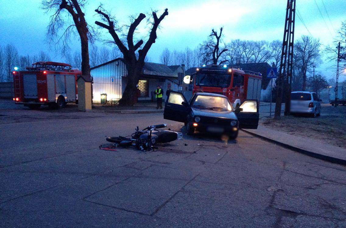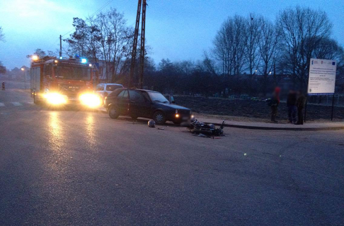 Do zdarzenia doszło dziś nad ranem, gdzie zderzyły się samochód osobowy oraz motorower, kierowca drugiego pojazdu został poszkodowany.