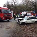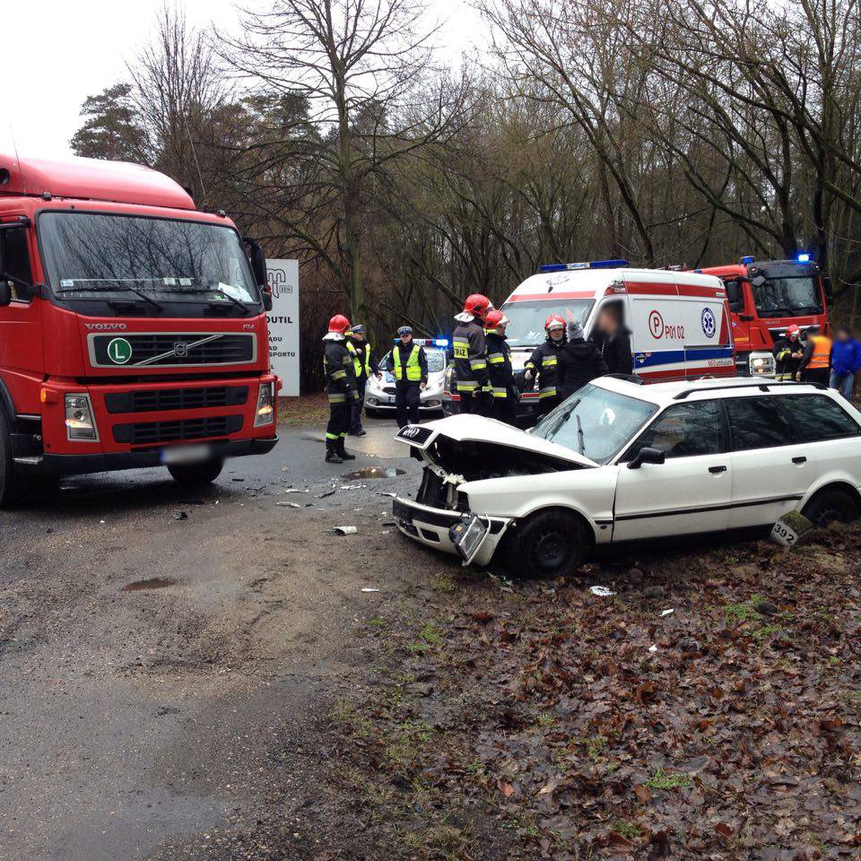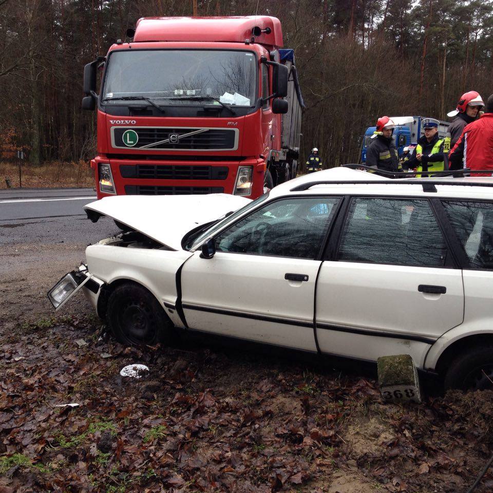 Na miejscu okazało się, że w wypadku brały udział dwa pojazdy: ciągnik siodłowy z naczepą oraz samochód osobowy. W białym Audi podróżowały 3 osoby, dwójka z nich została ranna i zabrana do szpitala. Kierowca Volvo nie odniósł obrażeń.
