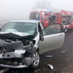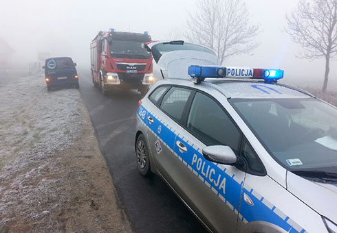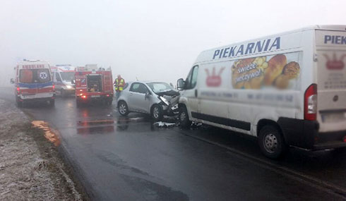 Działania strażaków polegały na zabezpieczeniu miejsca zdarzenia i udzieleniu kwalifikowanej pierwszej pomocy przed przybyciem ZRM. Przybyłe zastępy odłączyły także akumulatory w pojazdach i zneutralizowały płyny eksploatacyjne. Do zdarzenia doszło prawdopodobnie na skutek wpadnięcia w poślizg osobowej toyoty, która zderzyła się czołowo z busem. Trzeci kierowca chcący ominąć zdarzenie zjechał do rowu.