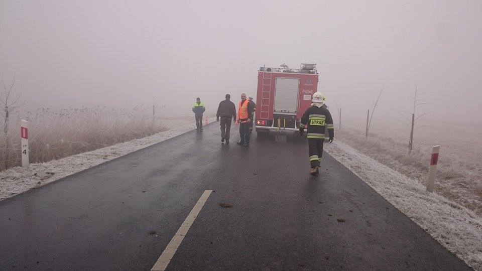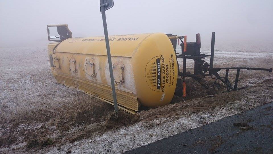 Na miejscu okazało się, że doszło do zderzenia zespołu pojazdu ciężarowego z przyczepą – cysterny z pojazdem osobowym, a następnie pojazdy te wpadły do przydrożnego rowu. W wyniku zderzenia kierowca Skody został zakleszczony w pojeździe, natomiast cysterna przewróciła się na bok.