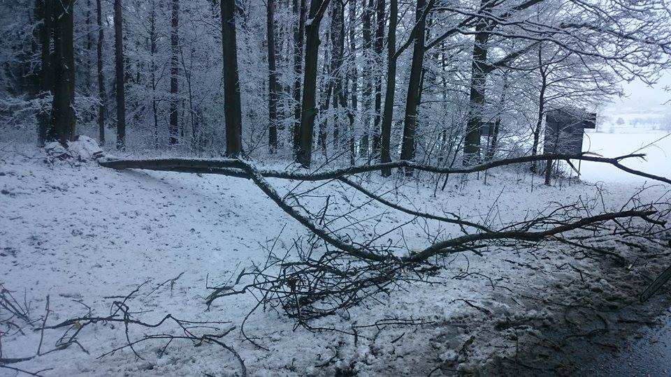 Przewrócone drzewo i zerwana linia energetyczna zaangażowały do działań dwie jednostki OSP dzisiejszego ranka.