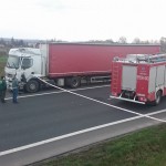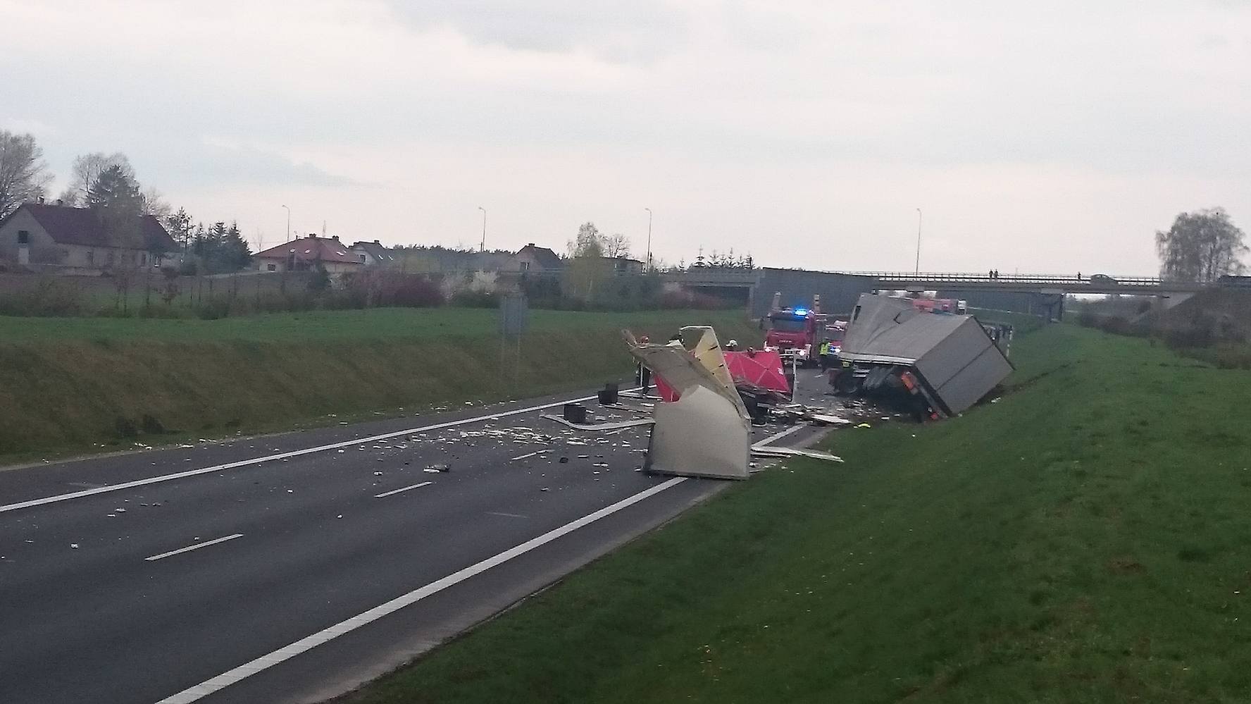 Droga w miejscu zdarzenia jest nieprzejezdna, utrudnienia potrwają jeszcze około 2-3 godzin. Na miejsce zadysponowany został także zastęp chemiczny, którego zadaniem jest przepompowanie oleju napędowego z uszkodzonego zbiornika paliwa ciągnika siodłowego.