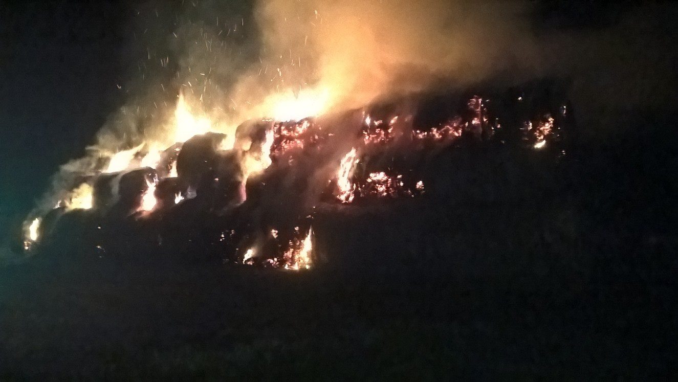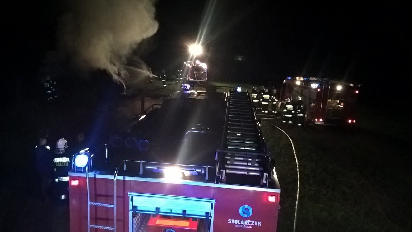 Na miejscu okazało się, że w płomieniach znajduje się około 100 balotów siana. Działania strażaków polegały głównie na gaszeniu palącego się siana, dogaszania palących się elementów, ale także pilnowania miejsca pożaru aż do świtu.