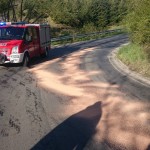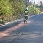Kwadrans przed godziną 8. dyżurny pilskiego CPR zadysponował jednostkę OSP Białośliwie do plamy ropopochodnej między Dębówkiem Nowym, a Krostkowem. Po dojeździe ochotnicy przystąpili do zabezpieczenia miejsca zdarzenia i neutralizacji plamy za pomocą sorbentu. Plama okazała się na tyle duża, że w działaniach trzeba było wykorzystać około 60kg sorbentu. Akcja trwała blisko godzinę.