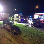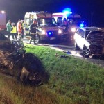 Po dojeździe na miejsce zdarzenia pierwszych jednostek rozpoznano, że doszło do zderzenia czołowego dwóch samochodów osobowych, z czego jeden znalazł się poza jezdnią. Działania polegały na zabezpieczeniu miejsca zdarzenia, odłączeniu akumulatorów, neutralizacji płynów eksploatacyjnych. W zdarzeniu ucierpiały 3 osoby, z czego 2 zostały zabrane do szpitala na obserwację.