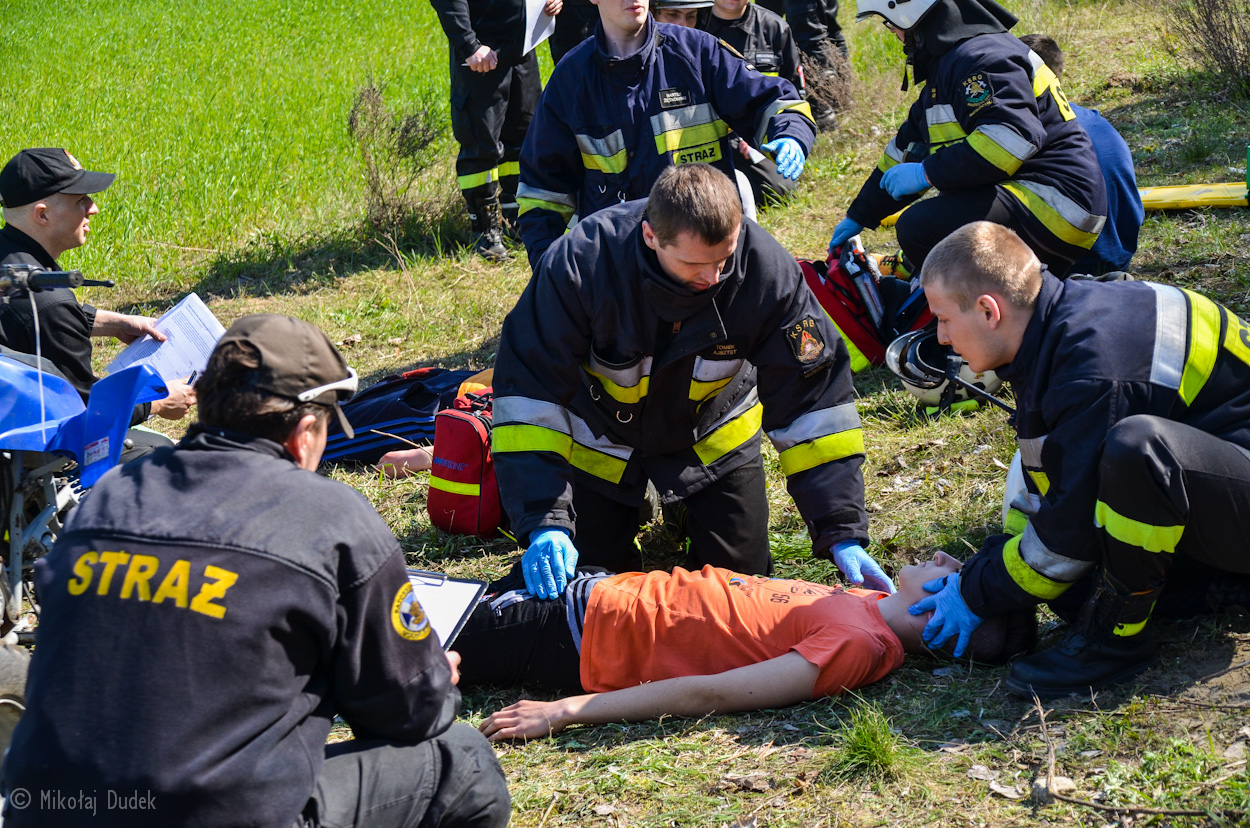 Scenka 3: Pijany kierowca quada wjeżdża w grupę osób, w wyniku wypadku cztery osoby zostały poszkodowane – kierowca: złamane 4 żebra, a także złamanie otwarte kości udowej, jedna osoba została uwięziona pod pojazdem, pozostałe osoby doznały złamań kończyny górnej oraz powierzchowne rany głowy,