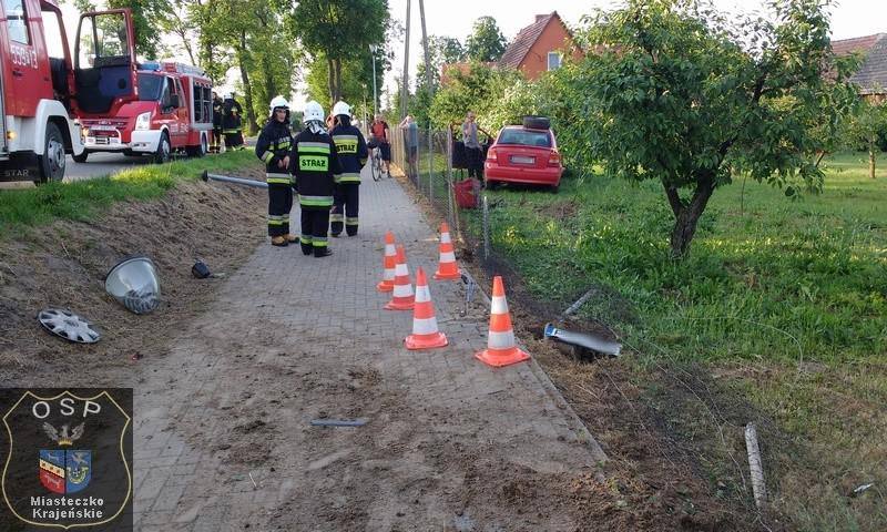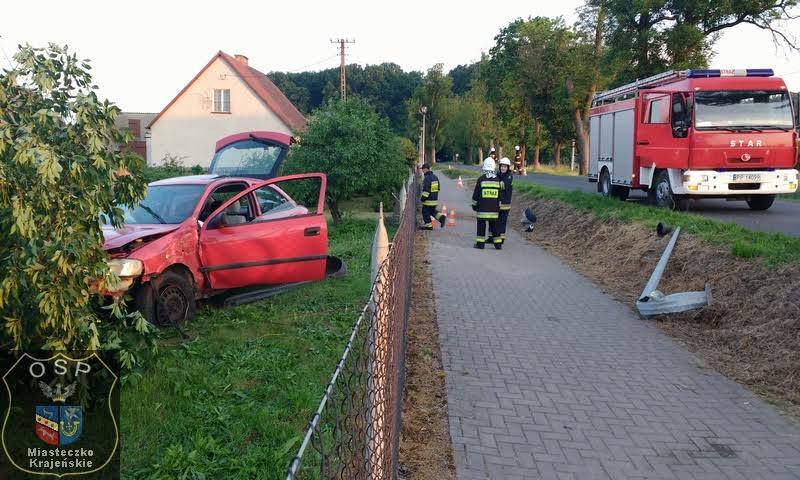 Około godziny 19:20 dyspozytor CPR w Pile otrzymał zgłoszenie o wypadku drogowym w miejscowości Brzostowo, gdzie pojazd osobowy marki opel zjechał z drogi, skosił przydrożną lampę, a następnie zniszczył płot, zatrzymując się na małych drzewach ogrodowych.