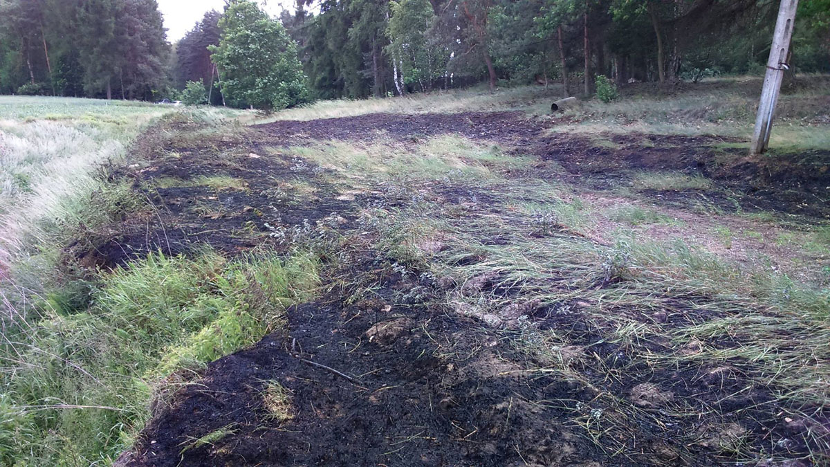 Pożar traw sąsiadował z obszarami leśnymi, lecz mimo silnego wiatru, który nie ułatwiał zadania strażakom udało się – ogień nie przeniósł się do lasu. Działania trwały godzinę, strażaków wspierali leśnicy.