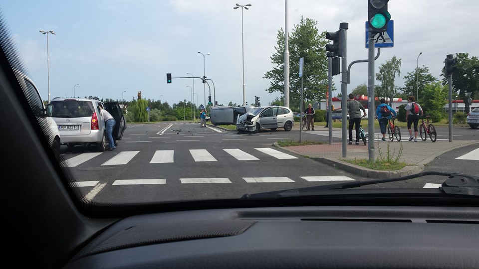 W dniu dzisiejszym, około godziny 10:00 strażacy z JRG1 wraz z policją i Zespołem Ratownictwa Medycznego zostali zadysponowani do zdarzenia drogowego na osiedlu Górnym. Na miejscu okazało się, że na skrzyżowaniu ulic: Mickiewicza i al. Wojska Polskiego zderzyły się dwa pojazdy osobowe, jeden z nich przewrócił się na bok. Na szczęście nikt nie został ranny.