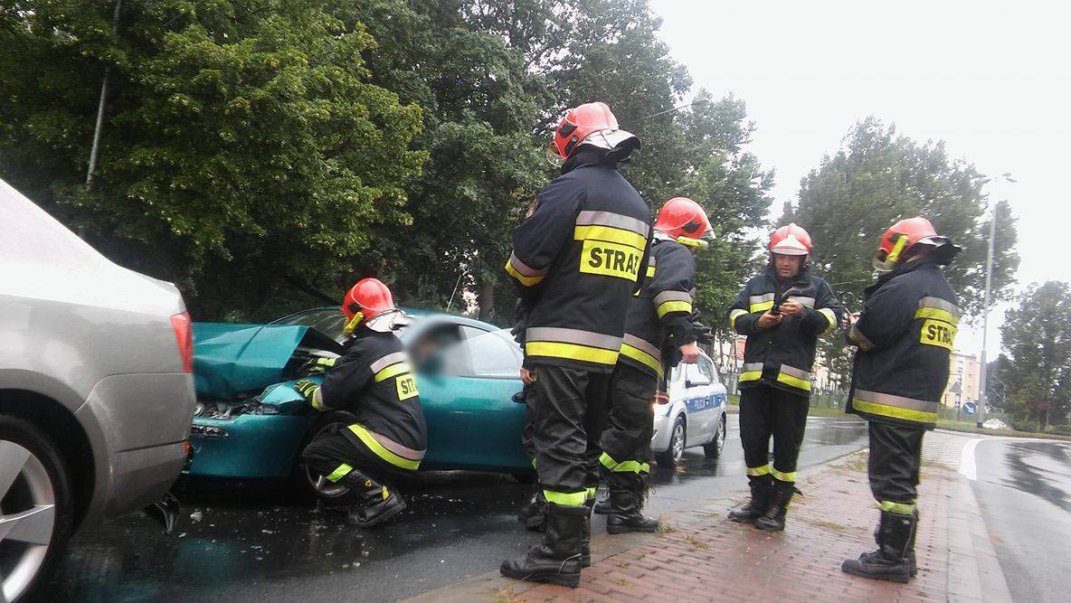 Kierowca skody, który został uderzony w tył swojego pojazdu został zabrany do szpitala, uskarżał się on na bóle kręgosłupa. Na miejscu pojawili się strażacy z JRG1 w sile dwóch zastępów, policja oraz Zespół Ratownictwa Medycznego P0102. Działania trwały około godzinę.