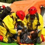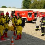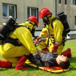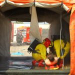 Natomiast w drugim etapie zajęć w sposób praktyczny przećwiczono w/w zagadnienia a także przetrenowano proces dekontaminacji osoby poszkodowanej znajdującej się w strefie skażonej.