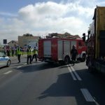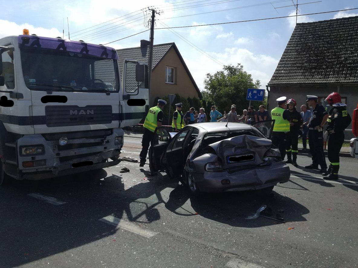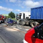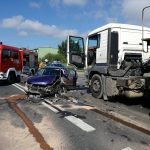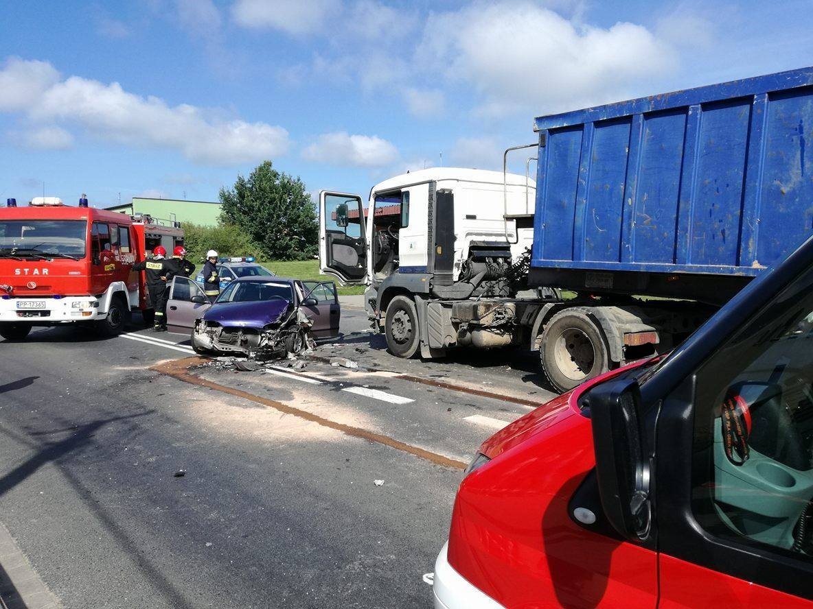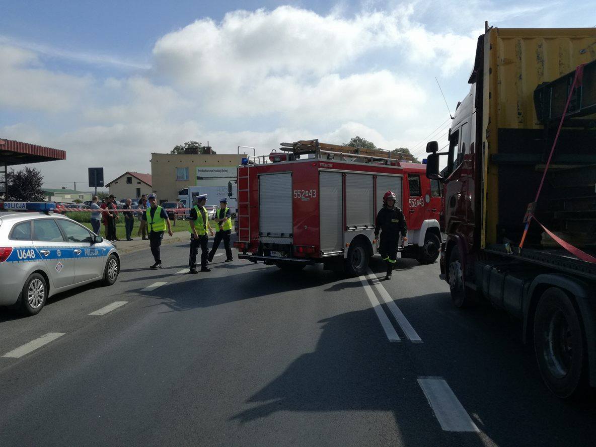 Na miejscu rozpoznano, że w wyniku nie zachowania należytej odległości, doszło do najechania ciągnika siodłowego z naczepą na tył pojazdu osobowego. Ten z kolei zepchnięty na przeciwny pas ruchu, zderzył się z jadącym prawidłowo w przeciwnym kierunku drugim ciągnikiem siodłowym z naczepą. W wyniku zdarzenia ucierpiała pasażerka osobowego Hyundaia została przetransportowana do szpitala. W czasie prowadzenia działań ruch na drodze był wstrzymany. Policja wyznaczyła objazdy.