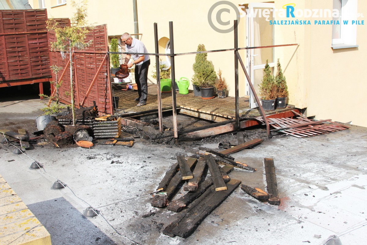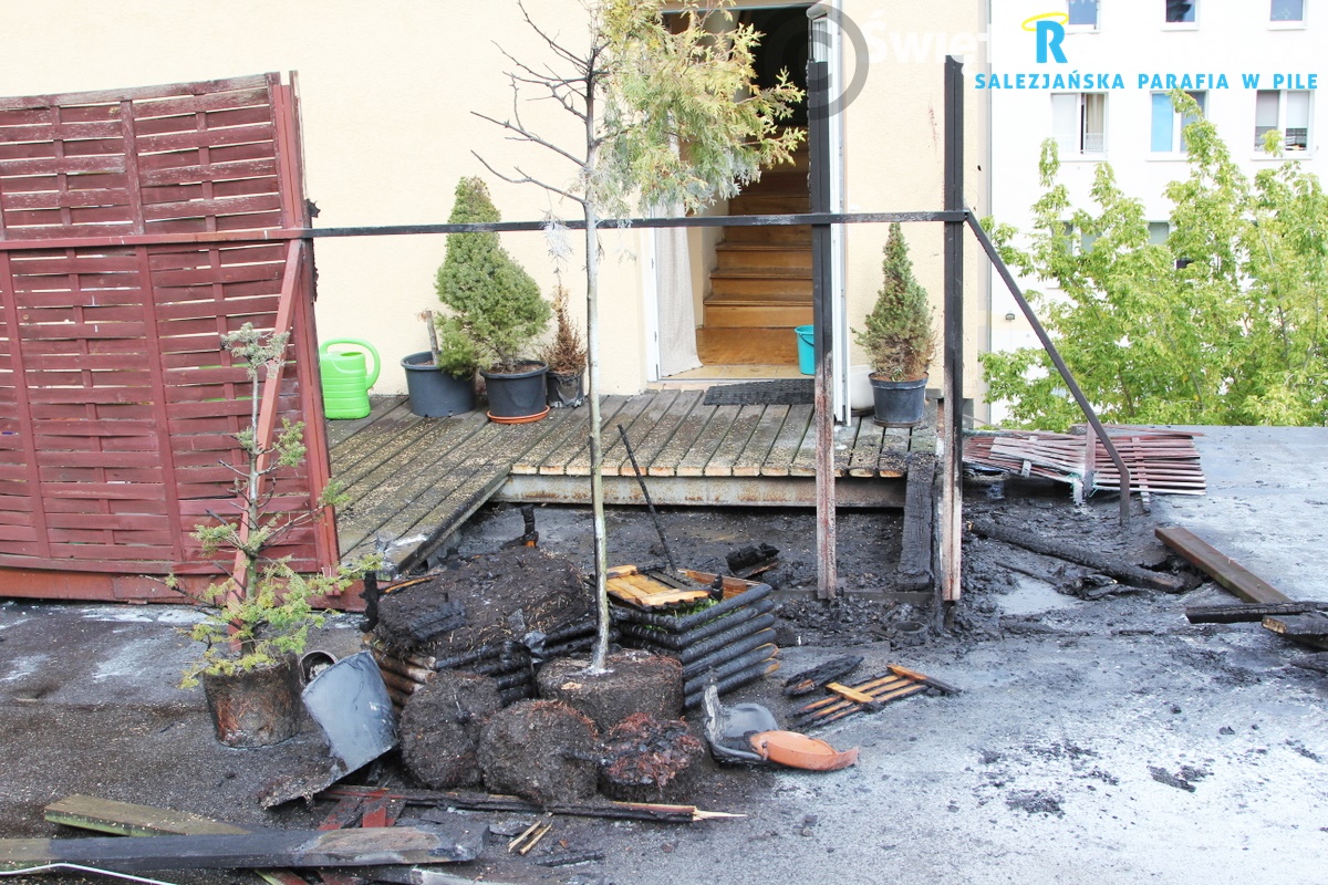 Na miejscu okazało się, że faktycznie doszło do pożaru. Na dachu przykościelnego budynku paliło się drewniane ogrodzenie, podest oraz rośliny. Jeszcze przed przybyciem straży pożarnej mieszkańcy plebani ugasili płomienie.