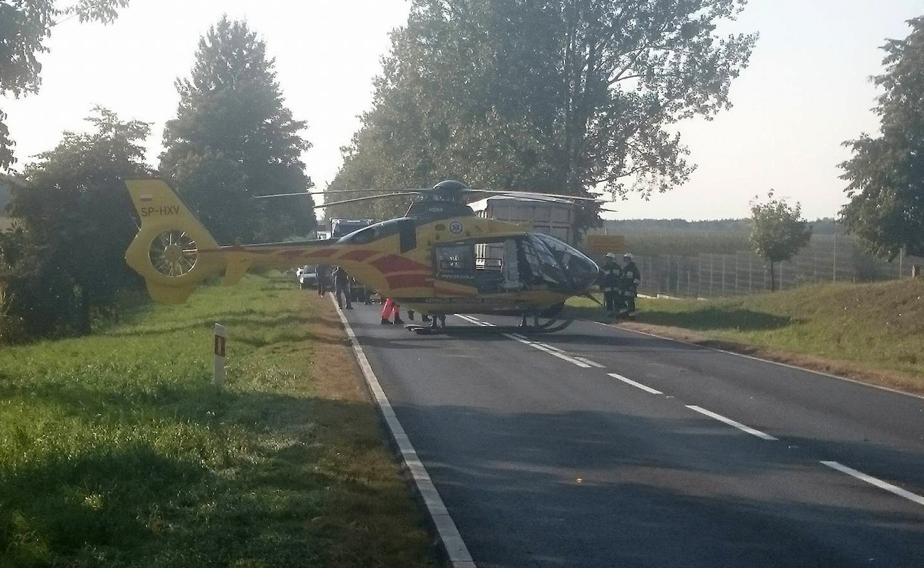 W dniu dzisiejszym po godzinie 16:00 dyżurny Stanowiska Kierowania Komendanta Powiatowego w Pile odebrał zgłoszenie o groźnym wypadku drogowym na DK10 w miejscowości Śmiłowo. Na miejsce natychmiast zadysponowano Państwową Straż Pożarną, okoliczne OSP, a także Zespoły Ratownictwa Medycznego, śmigłowiec LPR oraz Policję.