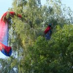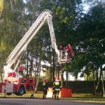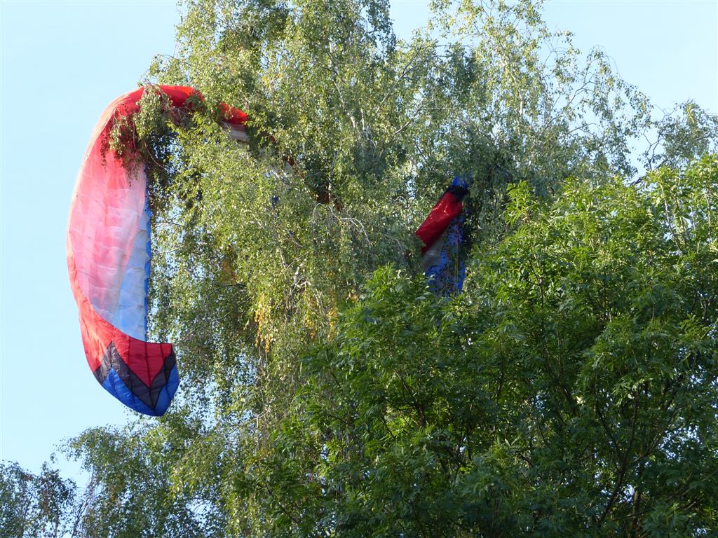 w miejscowości Łobżenica. Po rozpoznaniu okazało się, że paralotniarz zahaczył o drzewo i znajduje się na wysokości około 14 metrów.