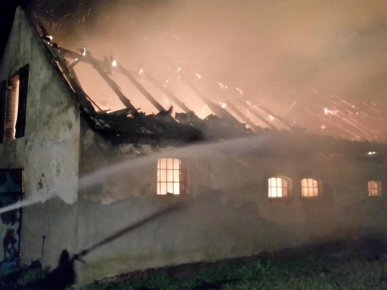 Budynek inwentarski w całości objęty był ogniem, na miejscu pracowało 16 zastępów straży pożarnej. Akcja gaśnicza wraz z dogaszaniem pogorzeliska trwała 10 godzin.