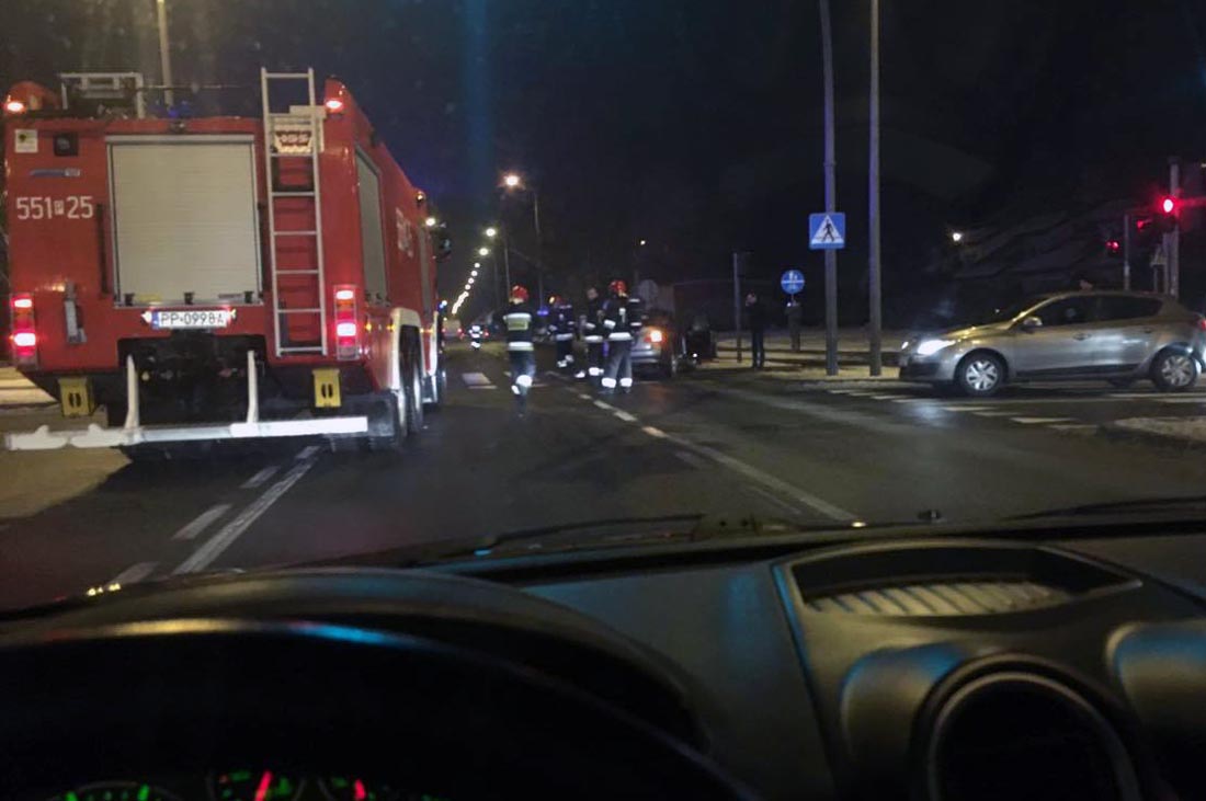 Do zdarzenia doszło w dniu dzisiejszym w godzinach popołudniowym na skrzyżowaniu okrężnym ulic: Mickiewicza, al. Wojska Polskiego i Koszalińskiej. Wszystko wskazuje na to, że pojazd straży pożarnej używając sygnałów świetlnych i dźwiękowych jechał do zdarzenia przy ul. Armii Krajowej.