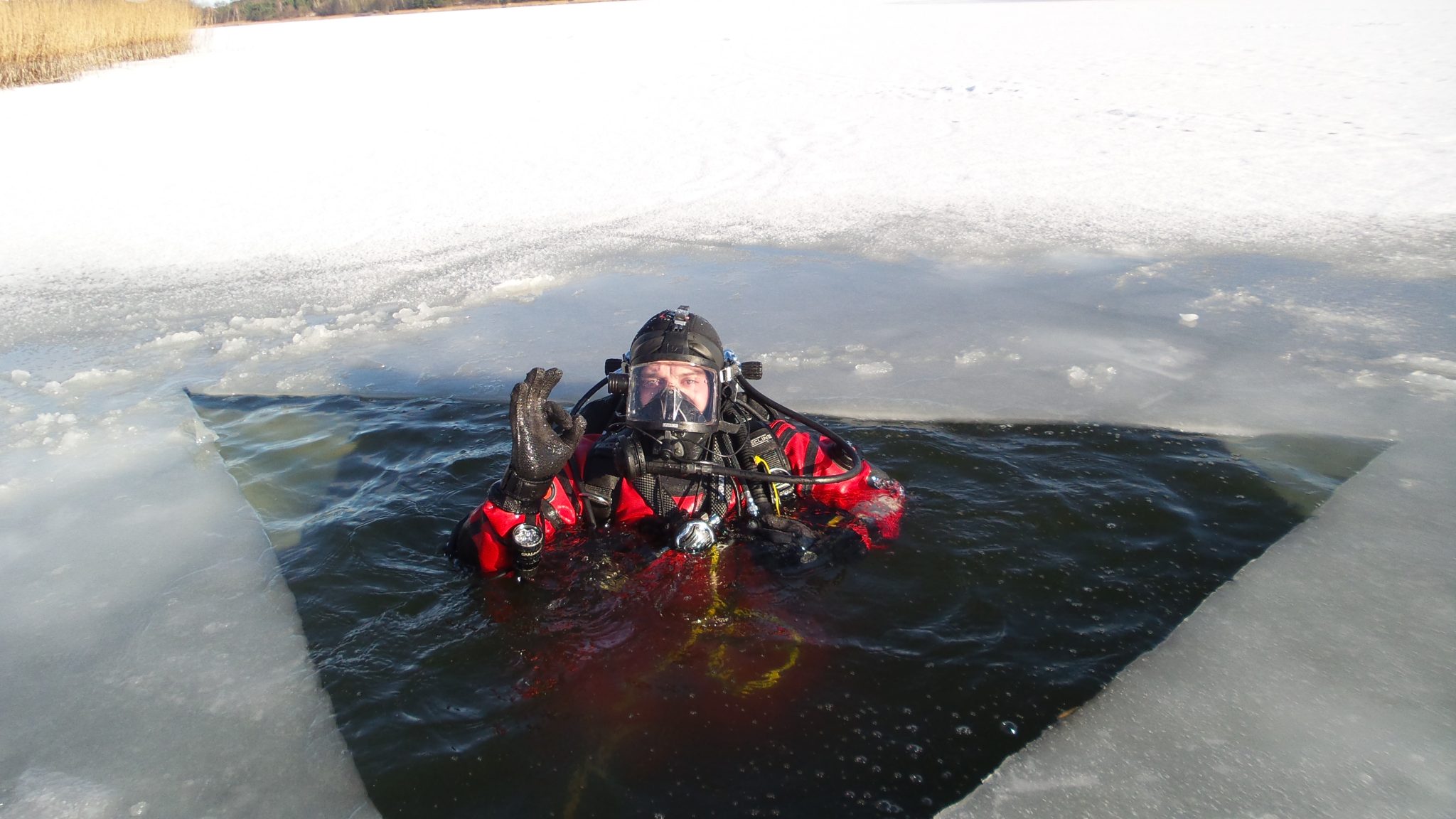 - Pierwszy moduł szkoleniowy – nurkowy zrealizowany pod 15 centymetrową taflą lodu przez wyznaczonych strażaków Specjalistycznej Grupy Ratownictwa Wodno – Nurkowego KP PSP w Pile.