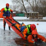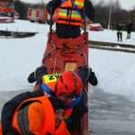 - Drugi moduł szkoleniowy dotyczył wykorzystania w praktyce sprzętu ratowniczego przez jednostki OSP i PSP w postaci deski lodowej oraz ubrań specjalnych do pracy w wodzie. Ratownicy zarówno na brzegu oraz obsługujący bezpośrednio sanie lodowe doskonalili swoją wiedzę i umiejętności w zakresie poszczególnych etapów trwającej kilkadziesiąt sekund akcji ratowniczej na lodzie.