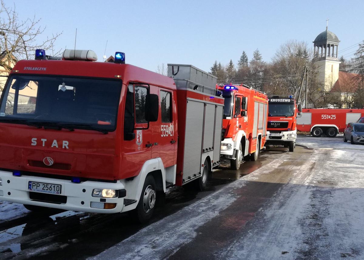 – Po dojeździe na miejsce zdarzenia kierujący działaniem ratowniczym poprosił o dodatkowe siły i środki. Nasze działania polegały na wprowadzeniu jednej roty ratowników wyposażonej w aparaty ochrony dróg oddechowych, kamerę termowizyjną oraz linię gaśniczą w celu ugaszenia pożaru, wyniesieniu butli z gazem oraz przeszukania pomieszczeń – informują strażacy z OSP Kruszewo.