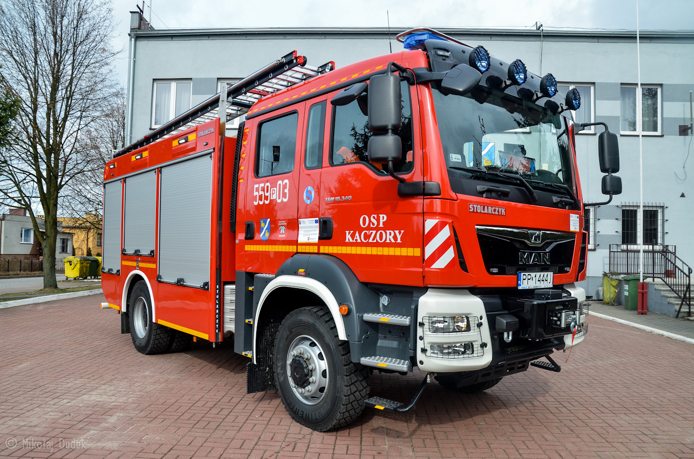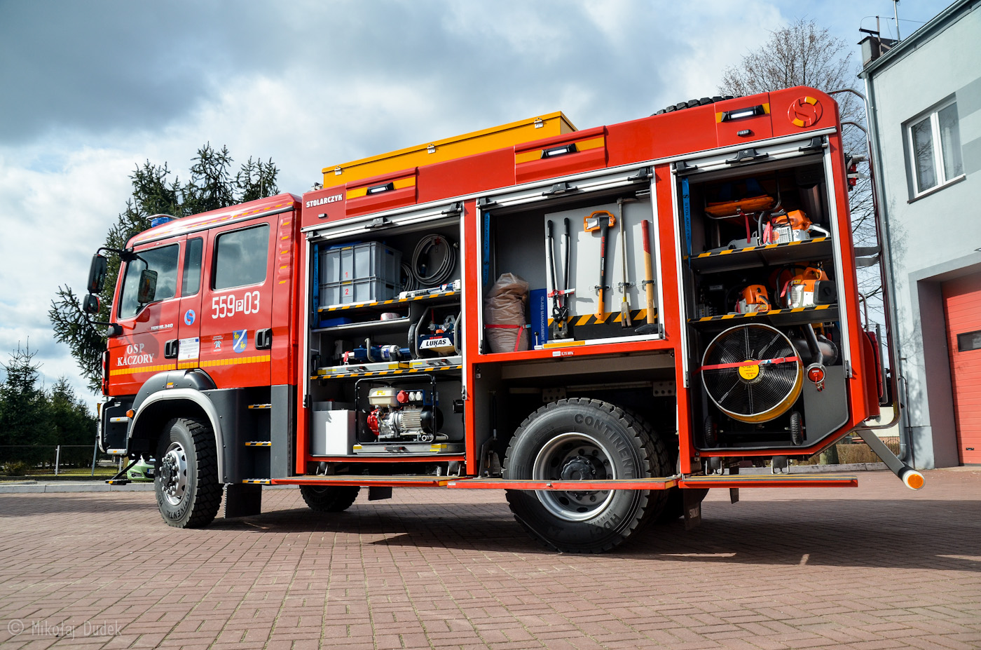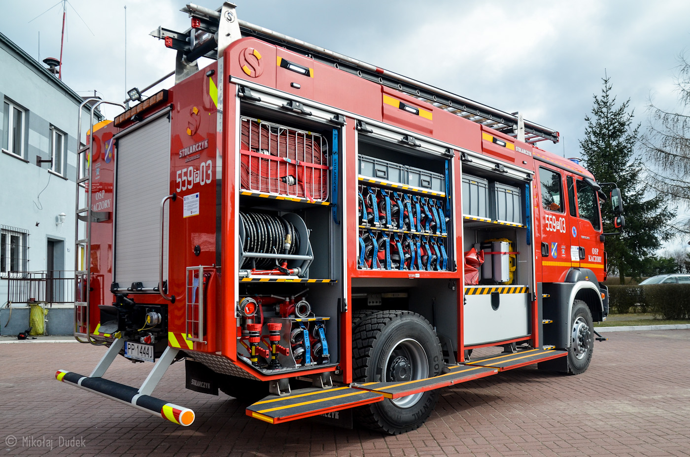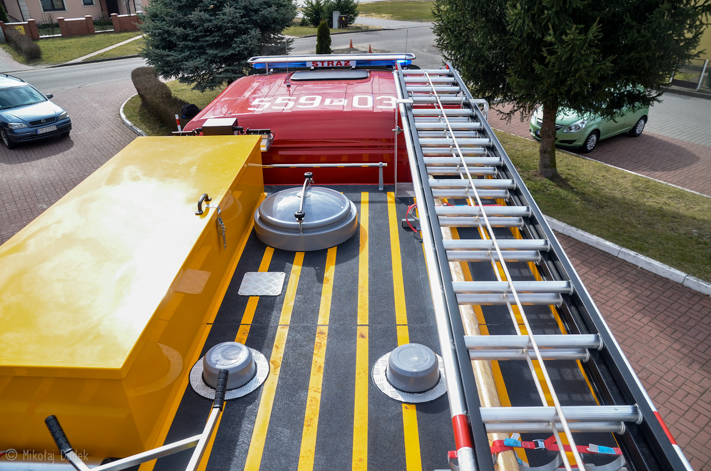 Nowy pojazd to średni wóz gaśniczy marki man TGM 18.340, który posiada zbiornik na wodę (4600 litrów) oraz 460 litrów środka pianotwórczego. Jego numery operacyjne to 559[P]03, nowy wóz zastąpił starego mercedesa.
