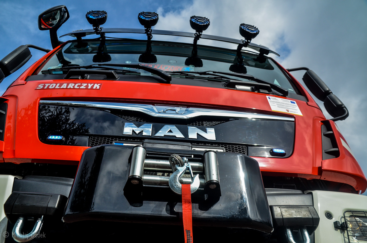 Obsadę wozu stanowi sześciu strażaków, którzy mają do dyspozycji sprzęt zarówno do działań technicznych, jak i do działań gaśniczych. Man posiada napęd na 4×4, dodatkowo otrzymał wzmocnione opony, dzięki czemu jest w stanie dotrzeć praktycznie w każde trudno dostępne miejsce.