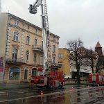 W pierwszej fazie działań strażacy zablokowali jeden pas ruchu na ul. Bydgoskiej. Strażacy sprawdzili każde z mieszkań detektorem wielogazowym – na szczęście wszystkie mieszkania było wolne od niebezpiecznych gazów. Na miejscu pojawili się strażacy z JRG1 – średni wóz gaśniczy i JRG2 – ciężki wóz gaśniczy i pojazd specjalny: podnośnik hydrauliczny. Działania trwały około godziny.