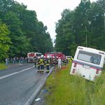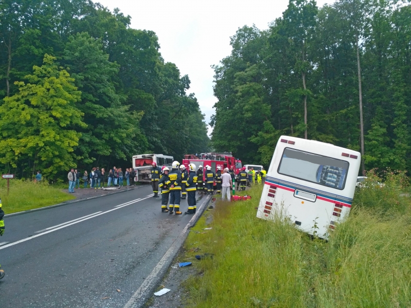 W wyniku zdarzenia poszkodowane zostały trzy osoby. Pomocy udzielili im wspólnie strażacy oraz przybyłe na miejsce Zespoły Ratownictwa Medycznego. Dalsze działania straży pożarnej polegały na organizacji ruchu wahadłowego w miejscu zdarzenia oraz pomocy w wydobyciu wraku autobusu na jezdnię.