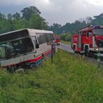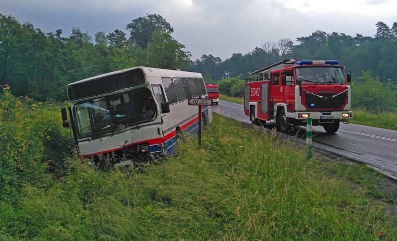 Działania pierwszych przybyłych na miejsce zastępów straży pożarnej polegały na otworzeniu drzwi do autobusu, który zjeżdżając na pobocze utknął w ziemi i zaroślach, przechylając się niebezpiecznie na prawy bok.