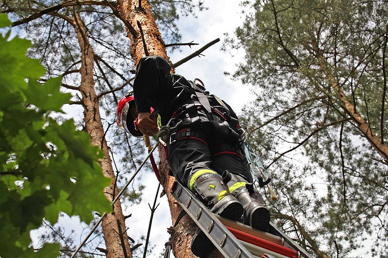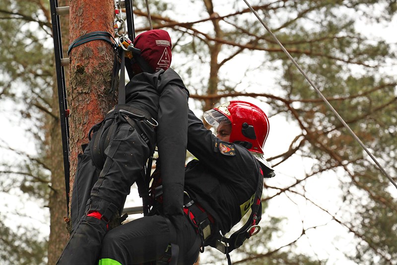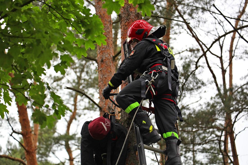 W zakresie specjalistycznym podczas ćwiczeń wykorzystane zostały drzewołazy, umożliwiające również bezpośrednie dotarcie do poszkodowanych znajdujących się na drzewach.