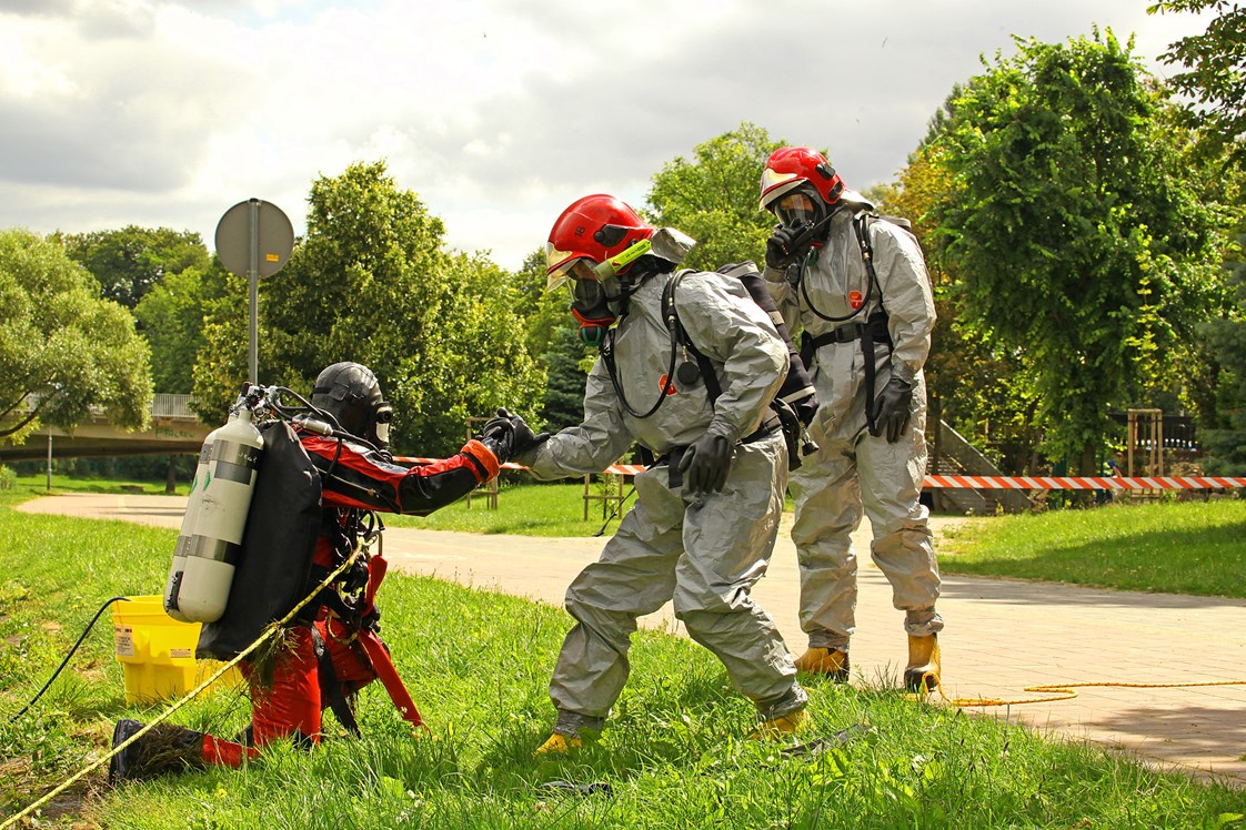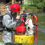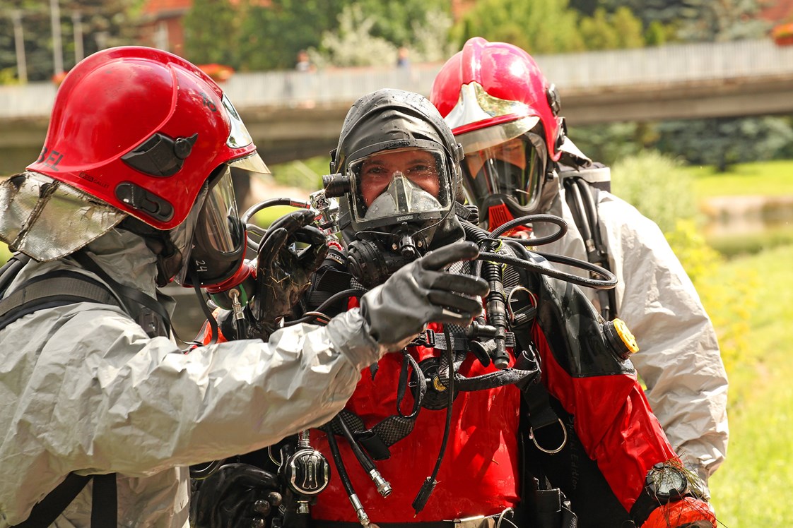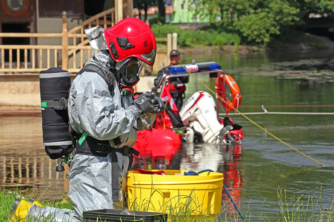 Ponadto z uwagi na wykonanie prac podwodnych bezpośrednio w wodach skażonych istniała konieczność dekontaminacji dla nurków oraz sprzętu biorącego udział w akcji. Do realizacji zadań wykorzystane zostały specjalistyczne kombinezony nurkowe odporne chemicznie, kabina dekontaminacyjna oraz sprzęt pomiarowy w postaci spektrometrów do identyfikacji substancji niebezpiecznych.