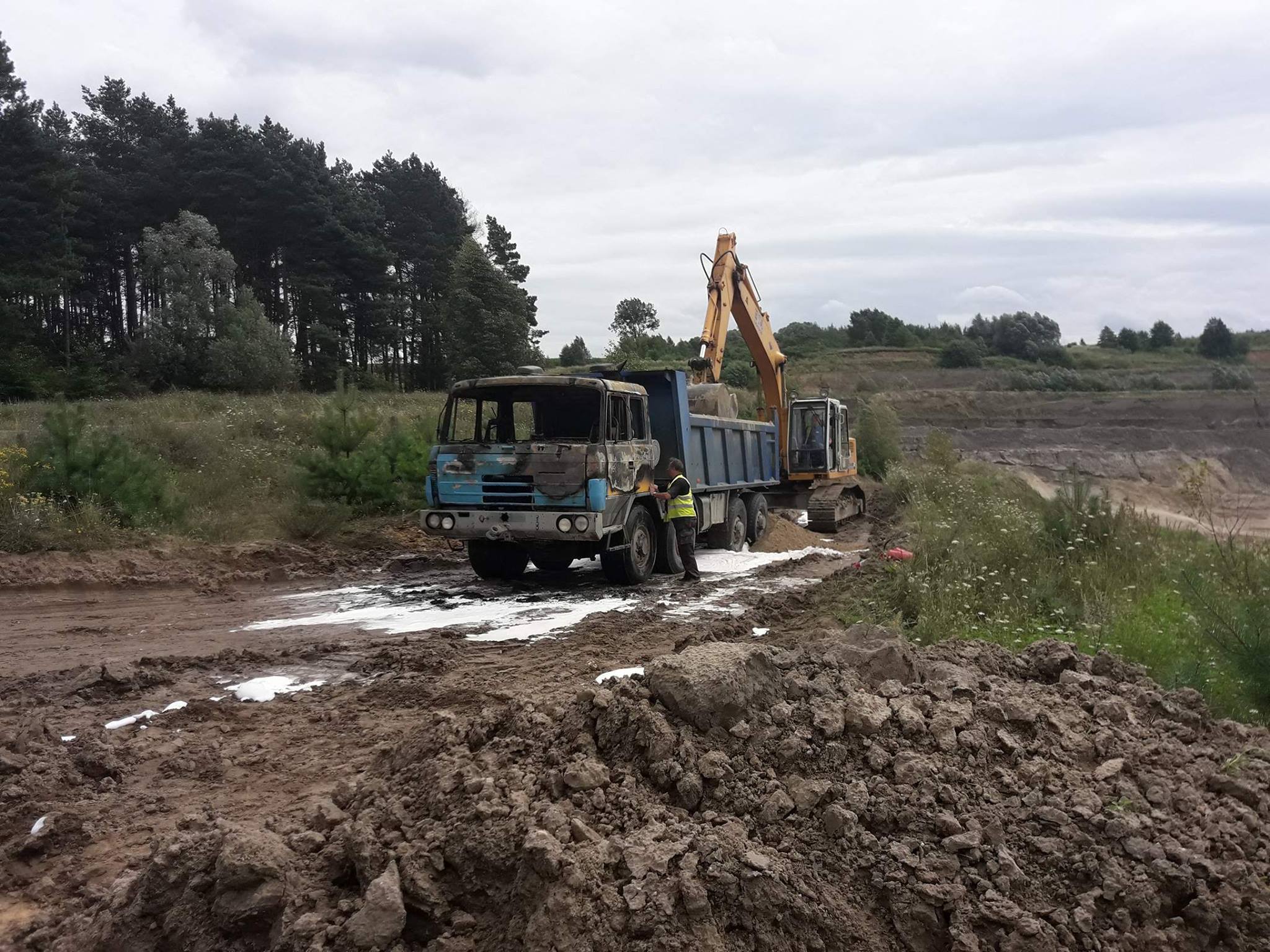 Dnia 4.08.2017r. o godzinie 11:33 w rozległ się dźwięk syreny alarmowej. Dyżurny SKKP PSP w Pile zadysponował OSP Kruszewo do pożaru na żwirowni w miejscowości Mirosław. Do działań wyruszyły dwa zastępy. Po dojeździe na miejsce zdarzenia okazało się, że pali się samochód ciężarowy przewożący piach. Dzięki przytomnej reakcji kierowcy, który odchylił kabinę udało się nie dopuścić do przeniesienia pożaru na komorę silnika. Na miejsce dojechał także jeden zastęp z JRG 1 PSP Piła. Po niecałych dwóch godzinach wróciliśmy do jednostki.