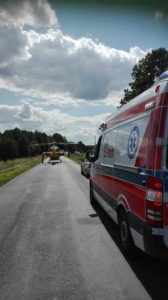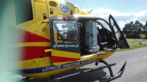 W wyniku wypadku i odniesionych ciężkich obrażeń głowy rowerzysty został on przetransportowany śmigłowcem Lotniczego Pogotowia Ratunkowego do szpitala w Poznaniu.