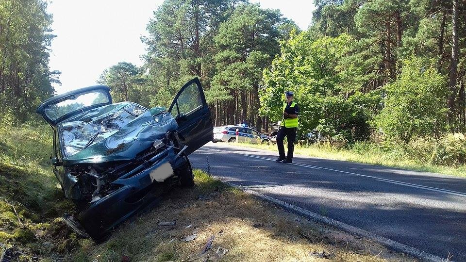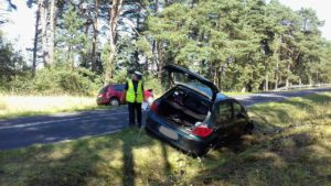 Dnia 30.08.2017r około godz 10 na wysokości jeziora Stobno wypadkowi uległy dwa auta Renault i Peugeot.
