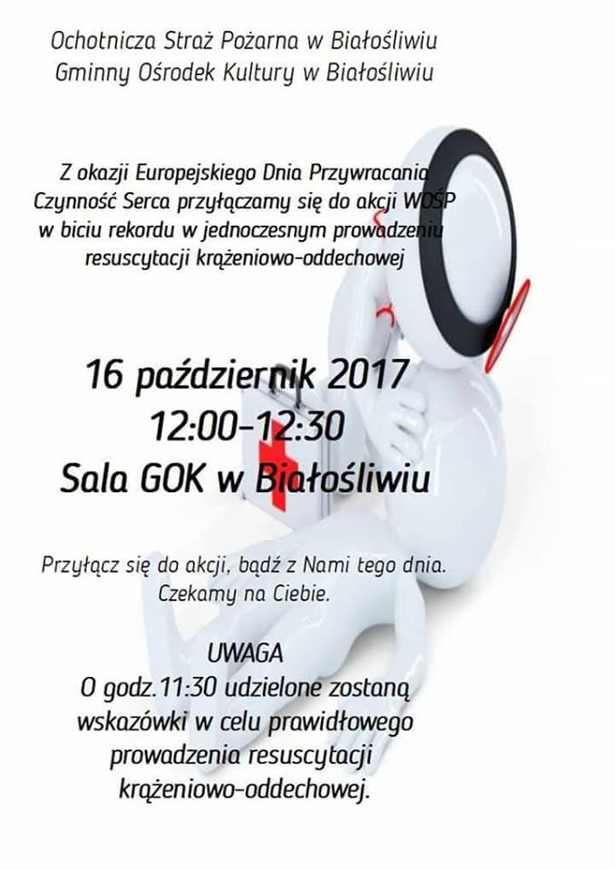 W tym roku, również i nasza jednostka postanowiła dołączyć do tego wydarzenia w związku z czym zapraszamy Państwa już w najbliższy poniedziałek na godzinę 11:30 do Gminnego Ośrodka Kultury w Białośliwiu gdzie dołożymy swoją cegiełkę do tego wydarzenia. Start wydarzenia o godz, 12:00, natomiast od godziny 11:30 będzie można sobie na spokojnie poćwiczyć.